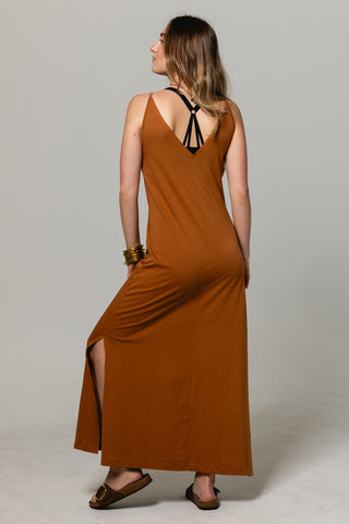 Strappy Maxi Dress Andrea | Peruvian Pima Cotton | Dark Honey