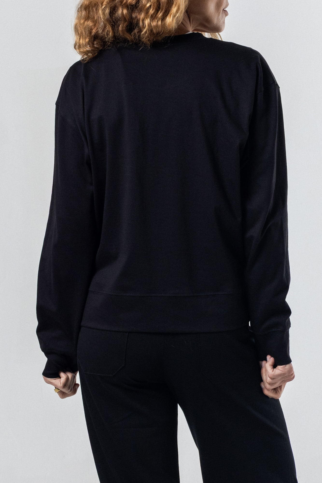 This long sleeve top features the same clean, timeless cut as our best-selling crew, designed with a slightly longer length for added comfort and coverage. The boxy, relaxed fit layers effortlessly over our Valentina Tank or Basic Tee and pairs beautifully with our Straight Leg Pant for a matching set or with denim. Perfect for travel days or everyday wear.