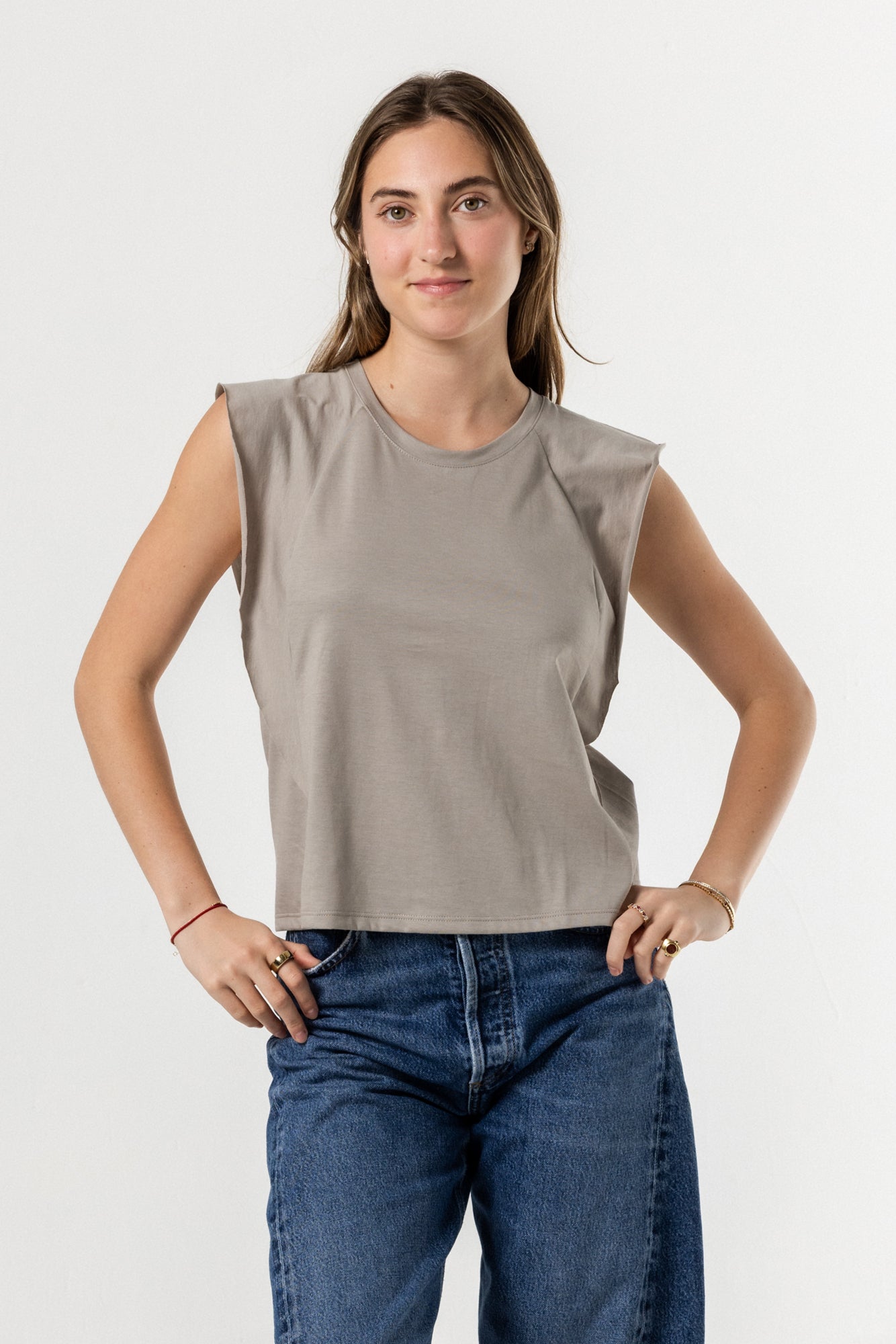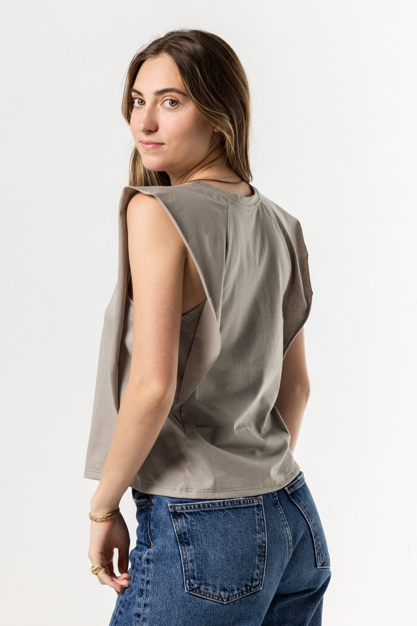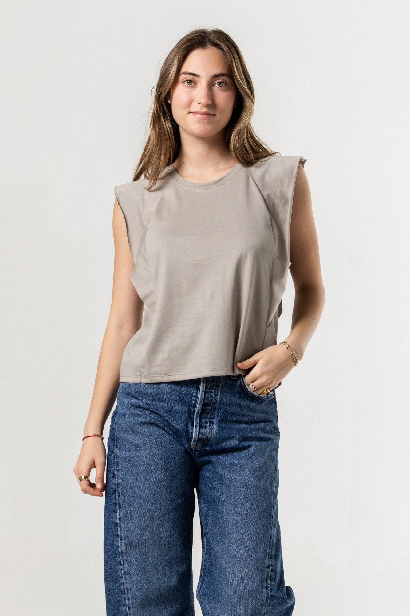 This sleeveless top is clean and modern with a soft ruffle trim that adds subtle movement. Pairs beautifully with tailored pants, jeans, or anything in your closet.